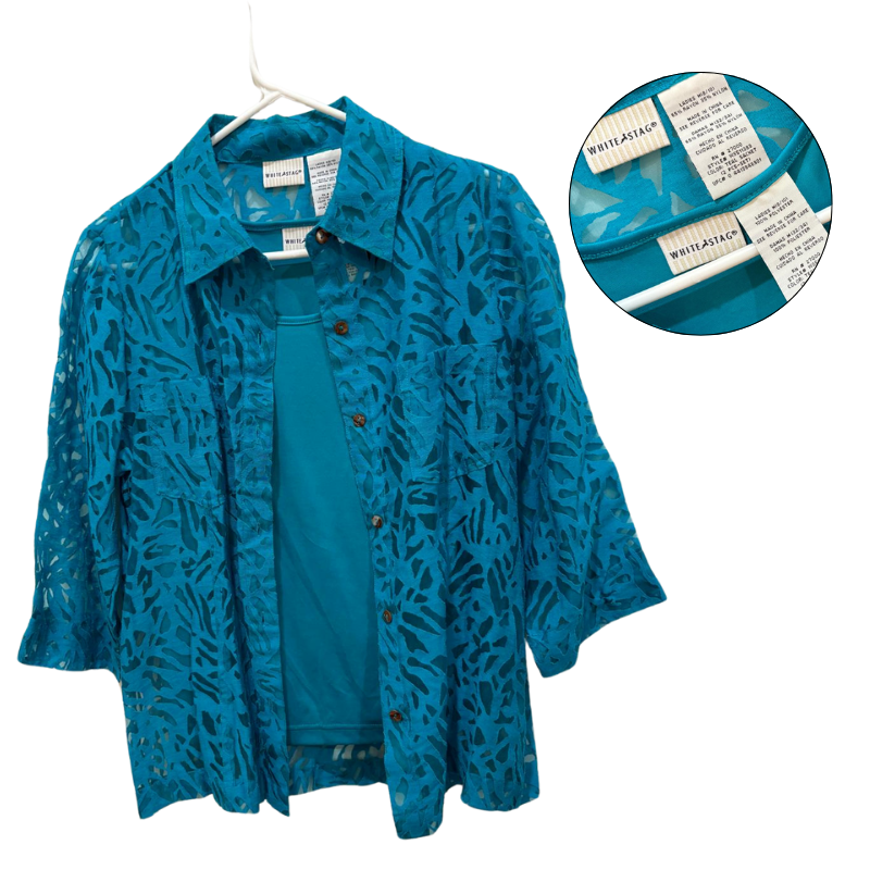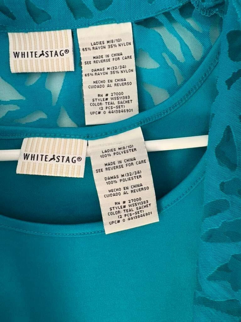 - White Stag Teal Burnout Blouse & Tank M Sheer 2-Piece NWT