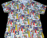 White Swan Penguin Noel Joy Snow Winter Holiday Christmas Scrub Shirt Sz Medium