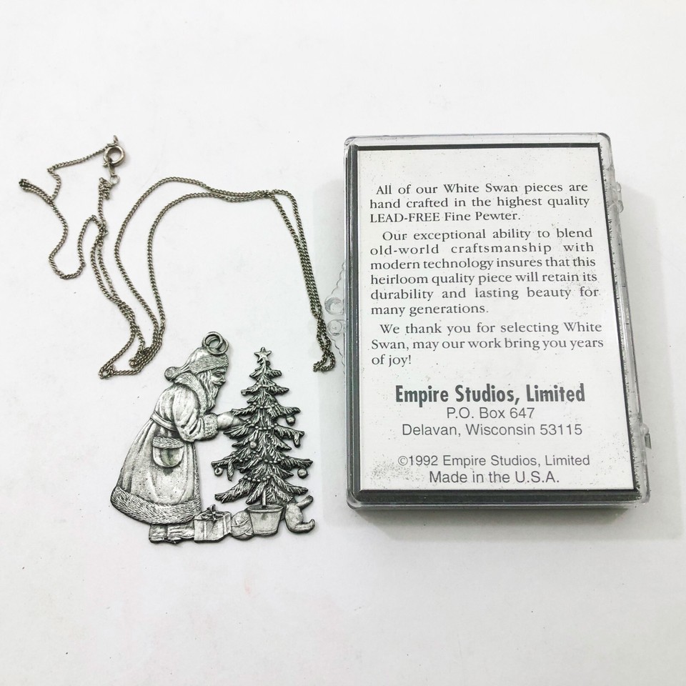 - White Swan Santa Claus Christmas Tree 1992 Ornament Necklace Vintage