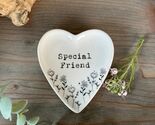 A heart shaped floral trinket dish with a pretty floral design and Special Friend slogan. A practical and stylish sentimental gift item for your friend.