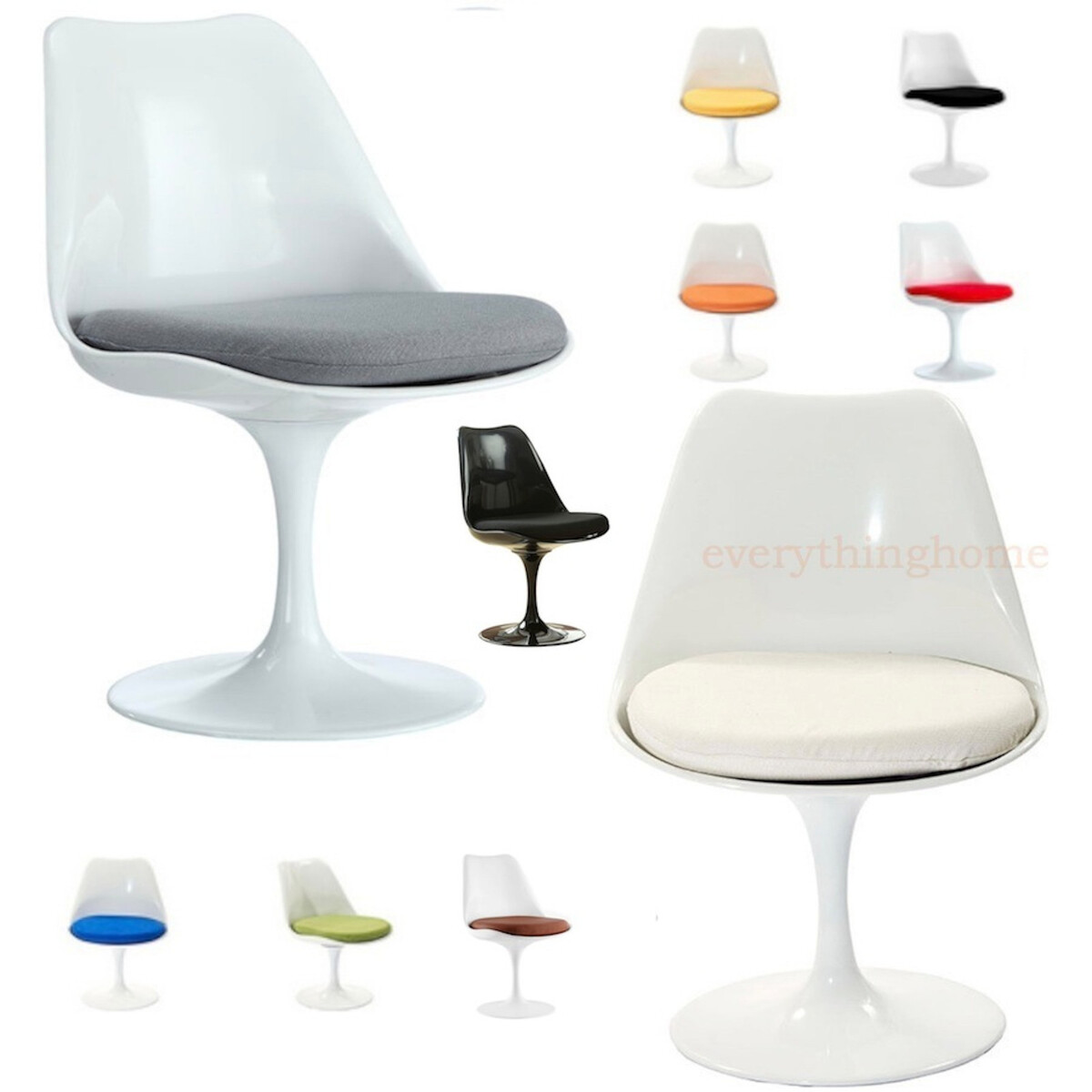 - White Tulip Flower Style Dining Side Chair - 9 Cushion Colors - Fabric Or Vinyl