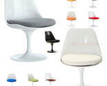 WHITE PLASTIC SWIVEL TULIP STYLE SIDE DINING CHAIR WITH RED, BLACK, ORANGE,