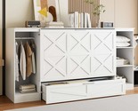 Twin Size Murphy Bed with Bedside Shelves and Wardrobe, White