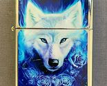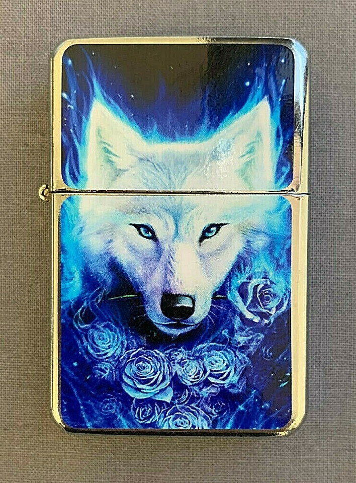 White Wolf Blue Roses Flip Top Oil Lighter Windproof