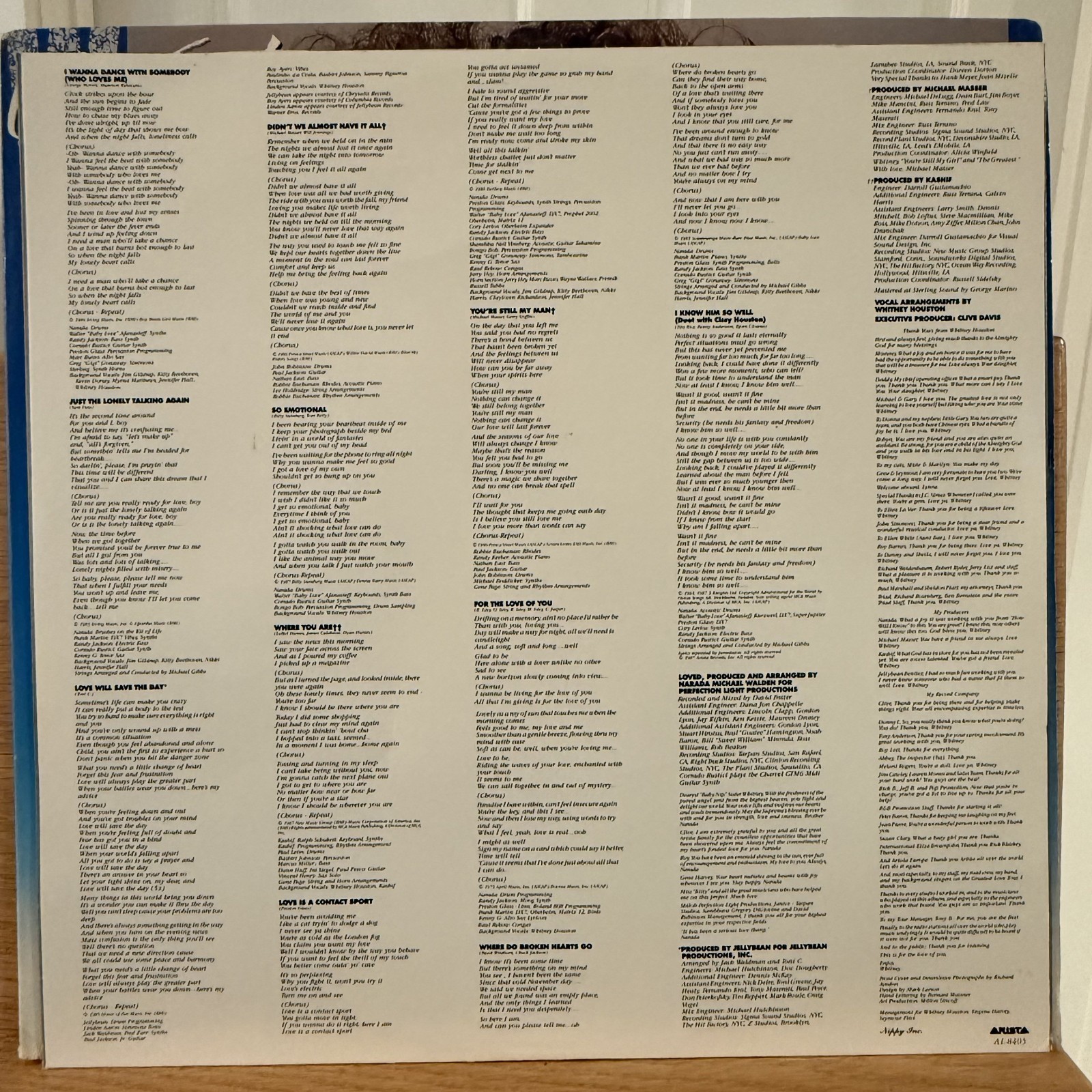 - Whitney Houston Whitney Vinyl LP Arista AL-8405 VG++ I Wanna Dance With Somebody