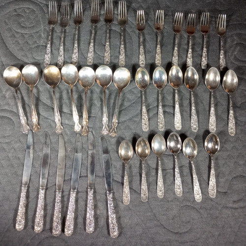 COMPLETE FLATWARE SETHOSTESS HELPERSHOLLOWWARE / TEA SETSMUSEUM QUALITY/FIGURAL SILVERFINE ESTATE VINTAGE JEWELRYMID-CENTURY MODERNSILVER FLATWARE SILVERWAREBuccellatiChristofleGeorg JensenNew Georg Jensen HollowwareNew Georg Jensen JewelryGorhamInternationalLuntMichael Aram - NewReed BartonTiffany Co.TowleWallaceWhitingPLACE SETTINGS