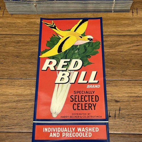 - Wholesale Lot Of 500 1940s Red Bill Brand Celery Harry Becker Produce Detroit JD