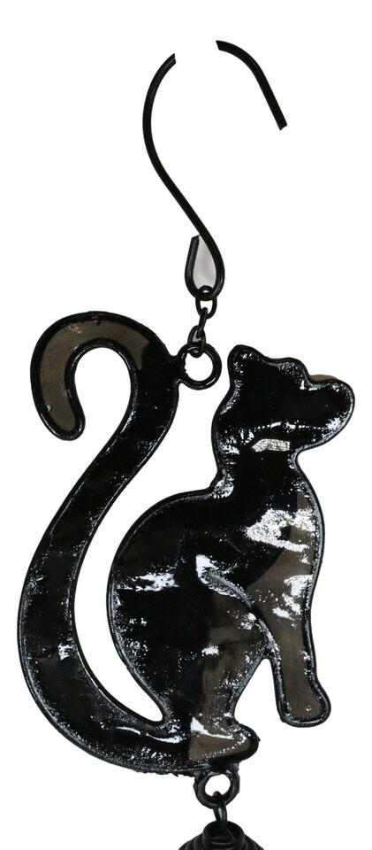 ? Simple yet effective, this melodic windchime features the profile of a cat silhouette and would make a lovely gift idea for any cat person wanting to make the most of their outdoor space. The cat is made of stained glass within its metallic frame. It acts as a suncatcher as well as a decorative wind chime. It is a perfect way to reduce your stress outdoors and indoors!