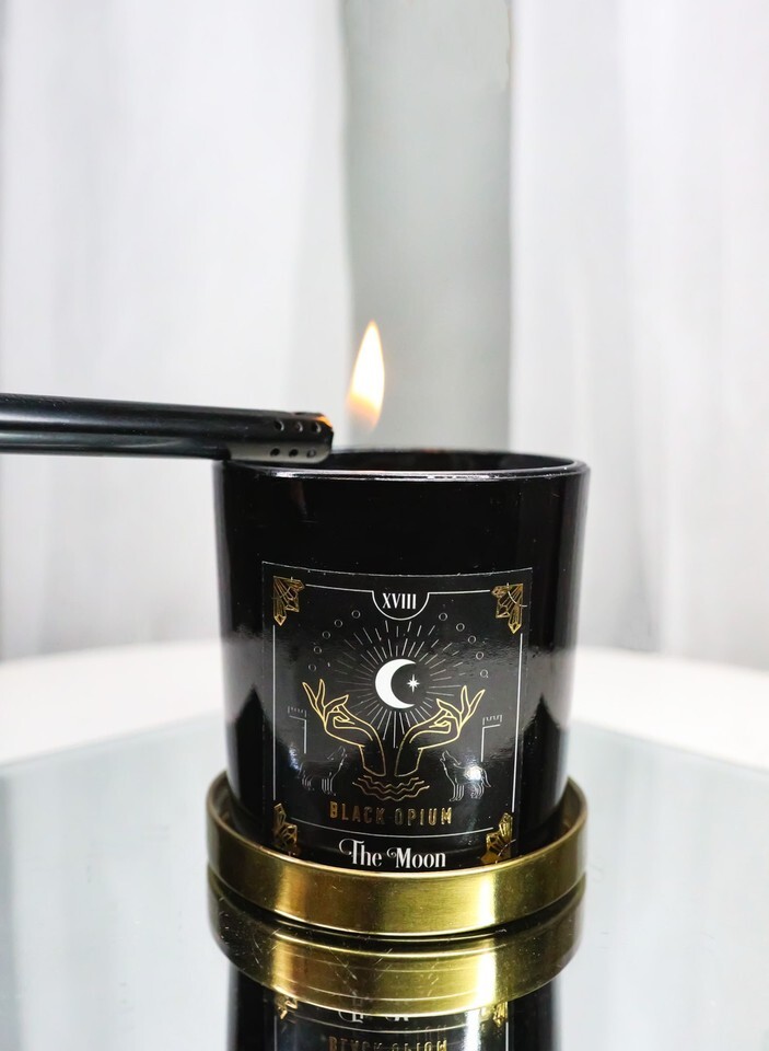 Wicca Witchcraft Mystic Tarot The Moon Black Opium Scented Candle With Gold Lid