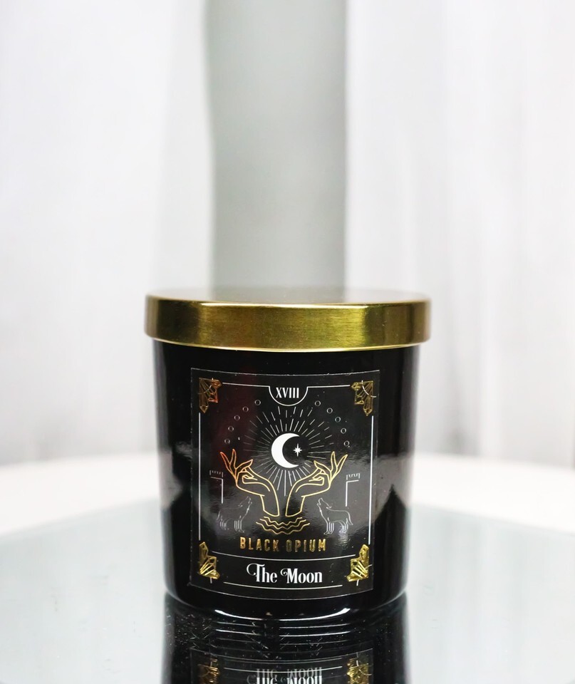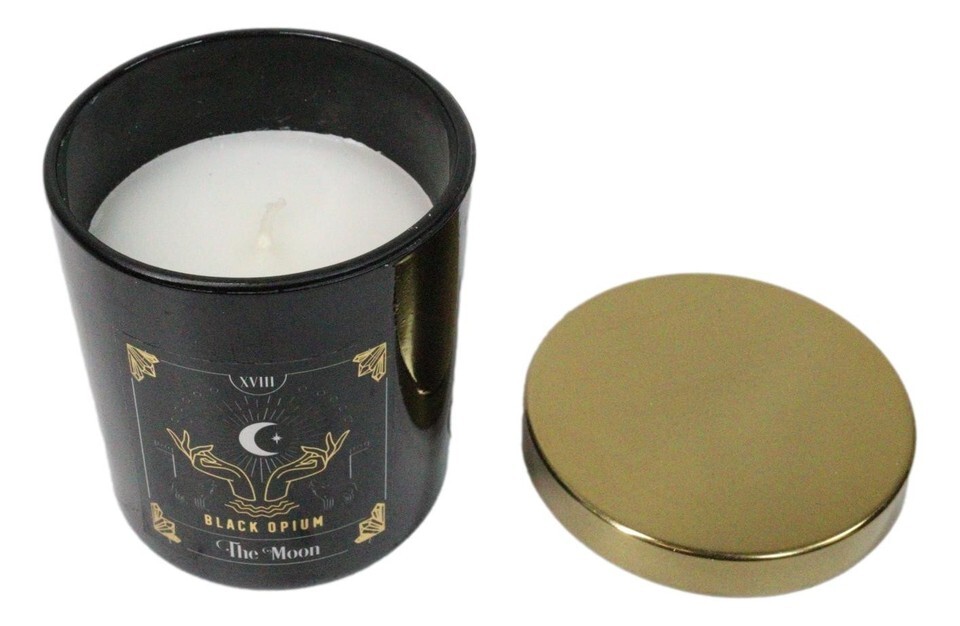- Wicca Witchcraft Mystic Tarot The Moon Black Opium Scented Candle With Gold Lid