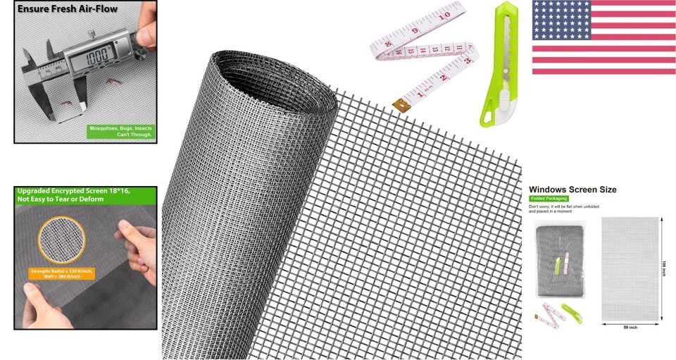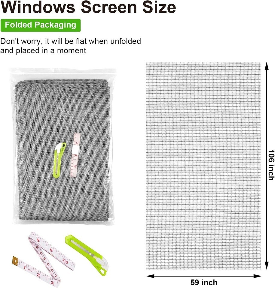 - Wide Application Fiberglass Window Screen Replacement, 59 x 106 Inches, Gray
