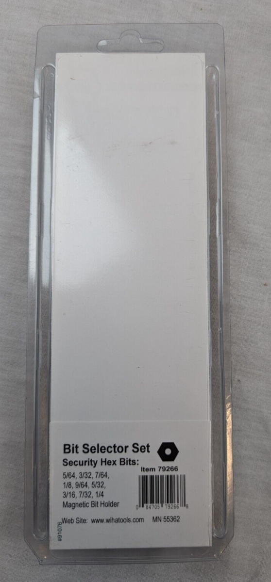 Up for sale is a brand new Wiha #79266 9 Piece Bits-Selector 1/4" Security Hex Magnetic Bit Holder Set