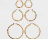 Wild Fable Graduated Tube Hoop Earrings 3pc Gold 2.83" Length