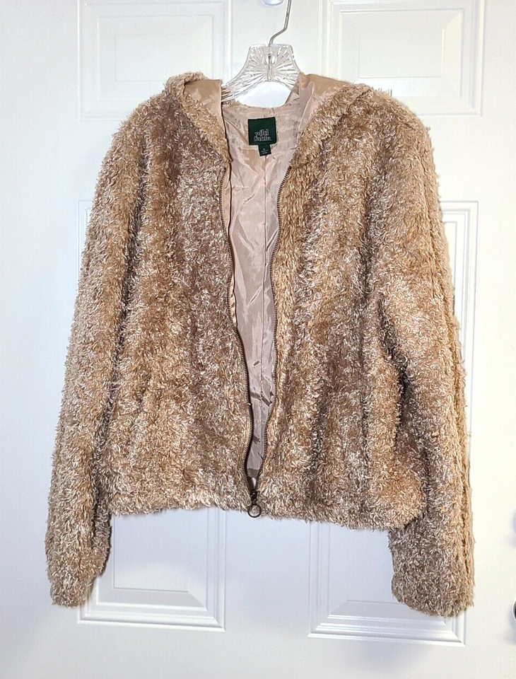 - Wild Fable Jacket Teddy Bear Size XL Caramel Bomber Hooded Lined Pockets Zipper