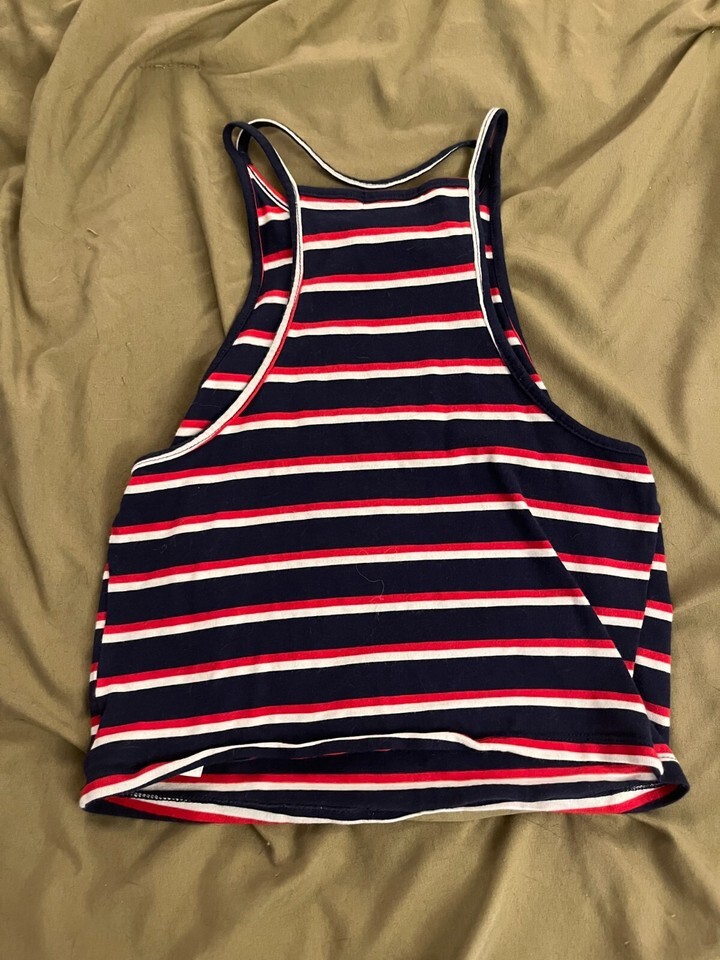 Wild Fable Top Women XS Blue Red Halter Sleeveless Crop Tank Top