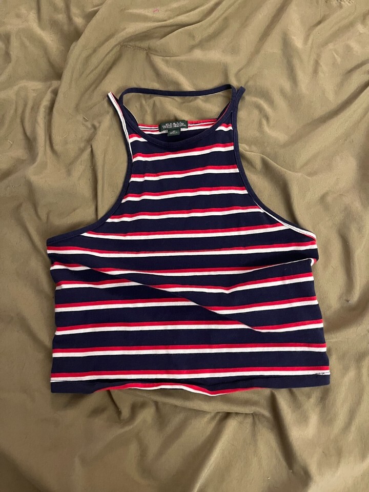 - Wild Fable Top Women XS Blue Red Halter Sleeveless Crop Tank Top