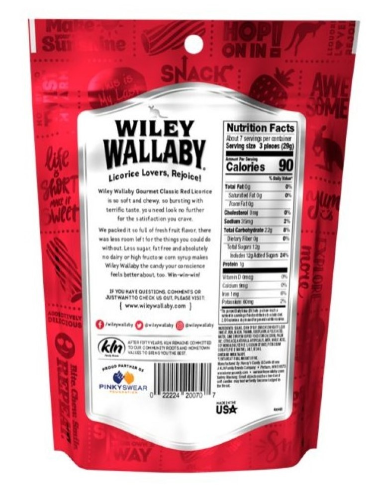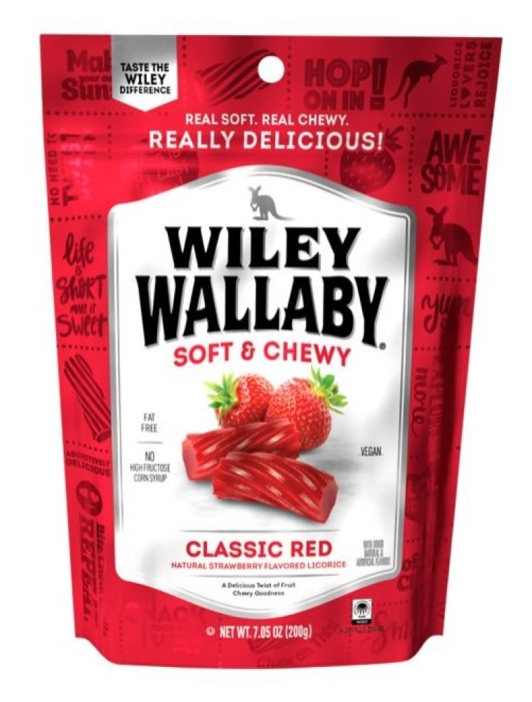 - Wiley Wallaby 120070 Classic Red Strawberry Flavor Licorice Soft & Chewy 7.05oz.