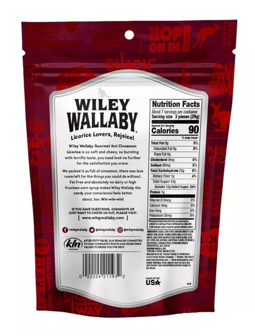 - Wiley Wallaby 121193 Hot Cinnamon Licorice Soft & Chewy 7.05 oz.