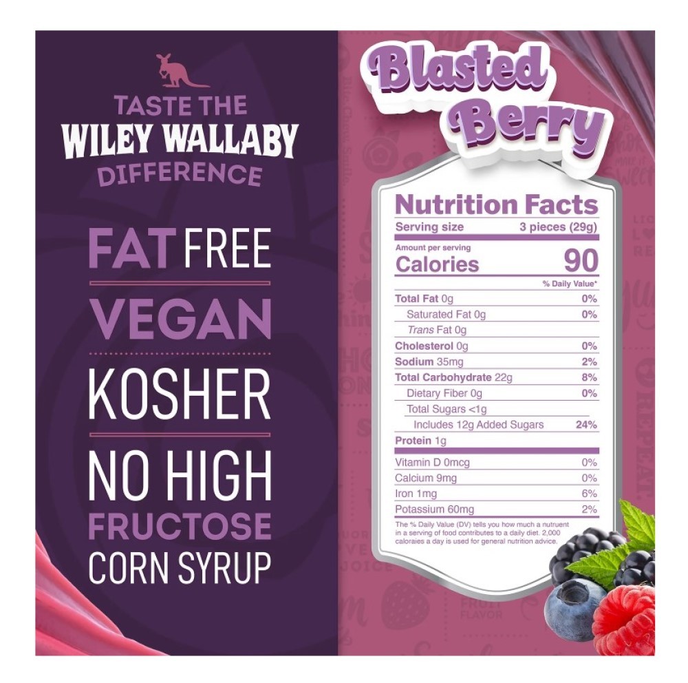 - Wiley Wallaby 121304 Gourmet Blasted Berry Licorice Soft & Chewy 7.05 oz.