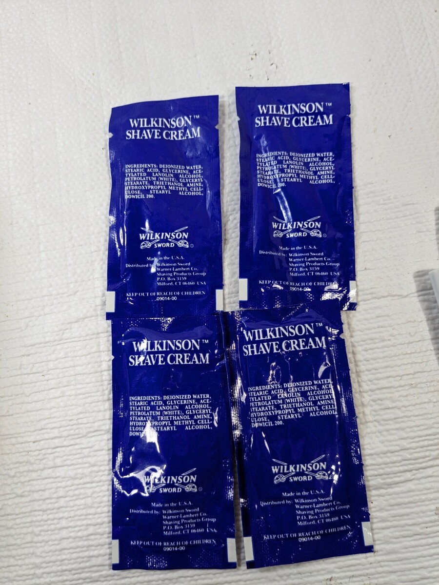 - Wilkinson Sword 4 Shave Cream travel packs & 2 disposable razors blue shaving