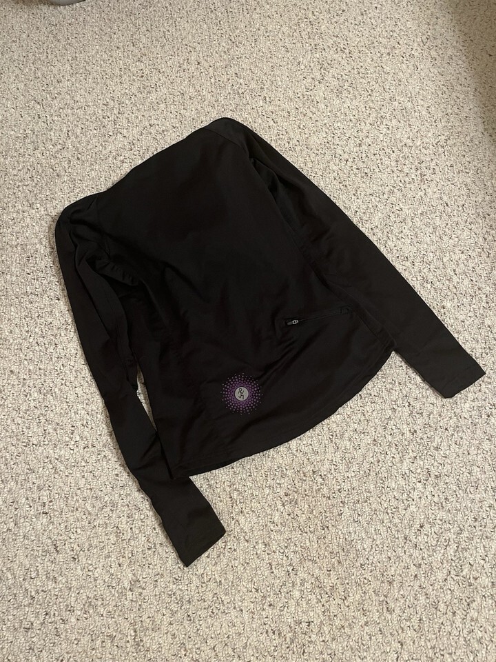 The Will Run For Chocolate Hot Chocolate 15K/5K Hoodie Jacket in women's medium size is a stylish and functional piece of activewear perfect for various occasions and seasons. The long sleeve hoodie features a pullover closure, making it easy to wear and comfortable for all-day use. The black color with chocolate character theme adds a fun and colorful touch to the design, while the hoodie style and hooded feature provide practicality for activities like gym workouts, walking, or running. With pockets for convenience and a regular fit, this hoodie is a versatile and practical choice for any active lifestyle.