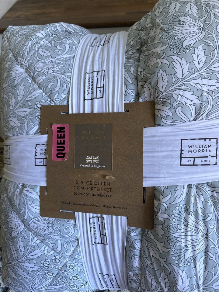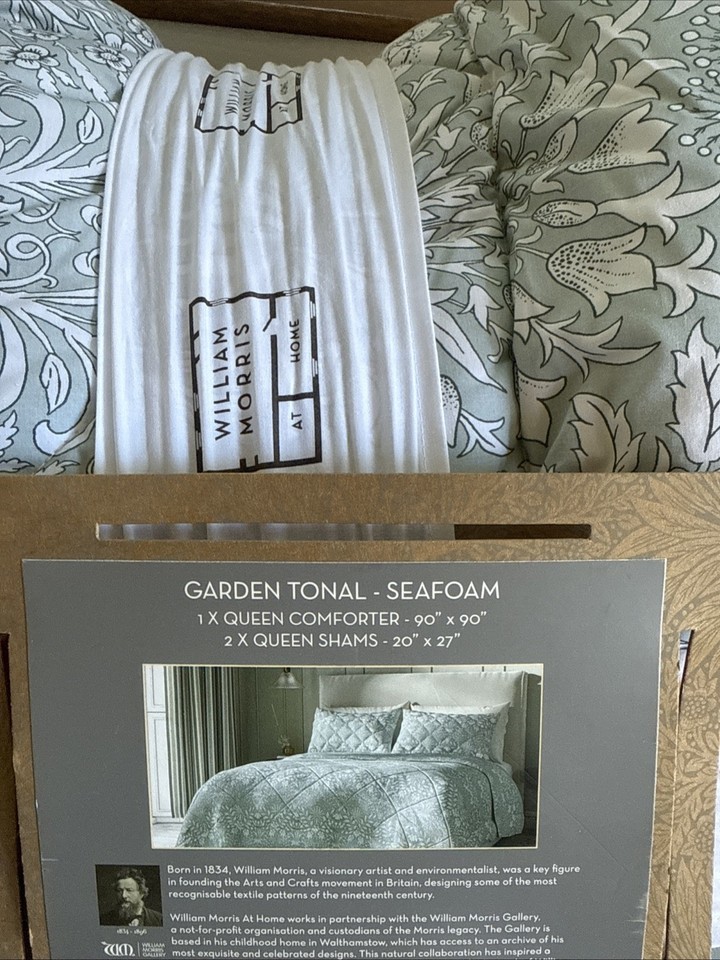 - William Morris Garden Tonal Seafoam Floral Green Queen Comforter Set 3 ~ New ~