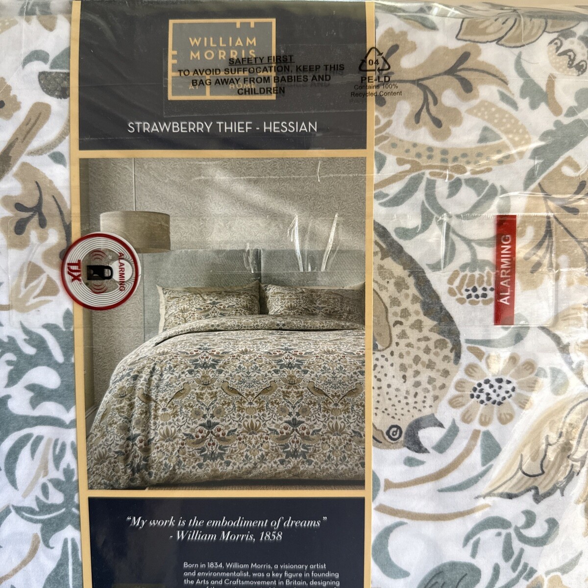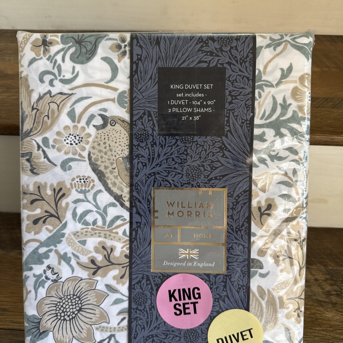 William Morris Strawberry Thief HESSIAN King Duvet Set 3 ~New~