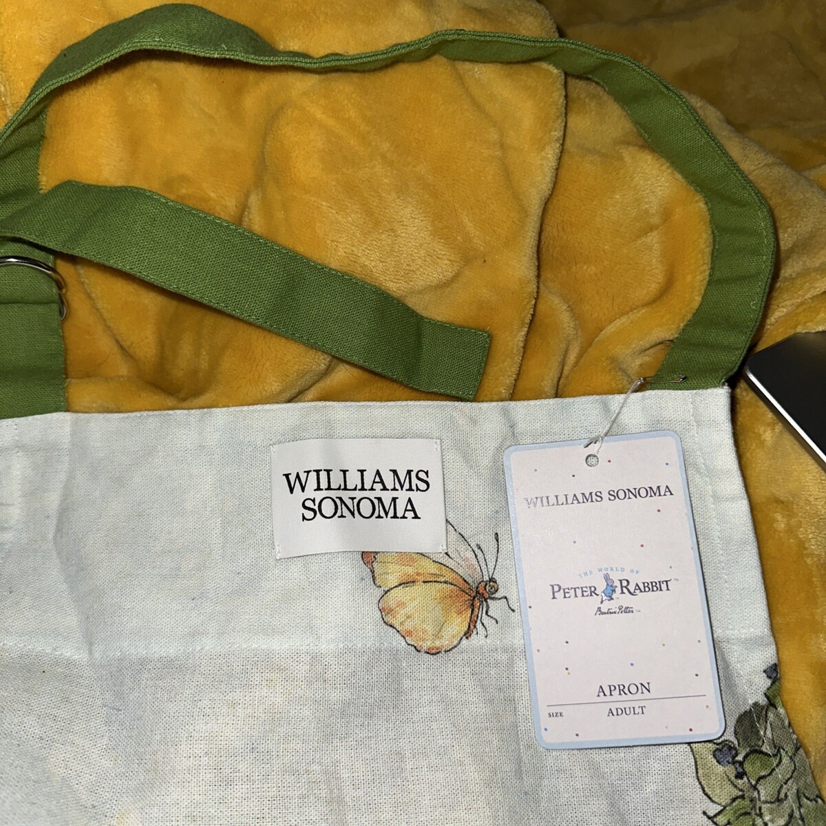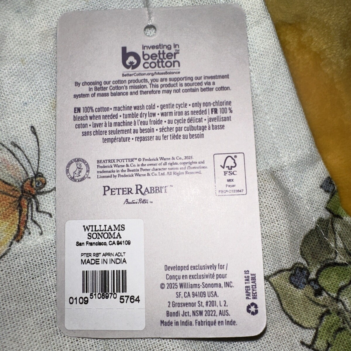 - William Sonoma Peter Rabbit Adukt Apron Multicolor Birds Rabbit Carrot Leafs NWT