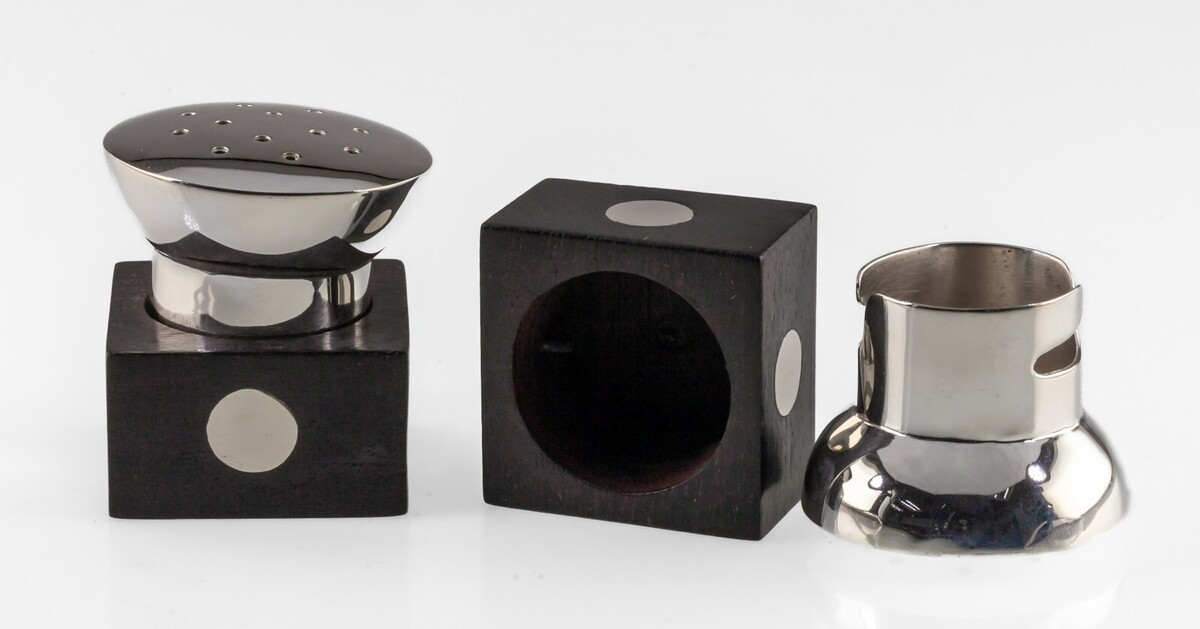 - William Spratling Rosewood Sterling Silver Salt and Pepper Shakers