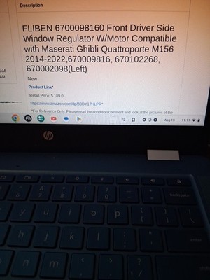 - Window Regulator Motor Front Left Side FOR 14-22 Maserati Quattroporte M156