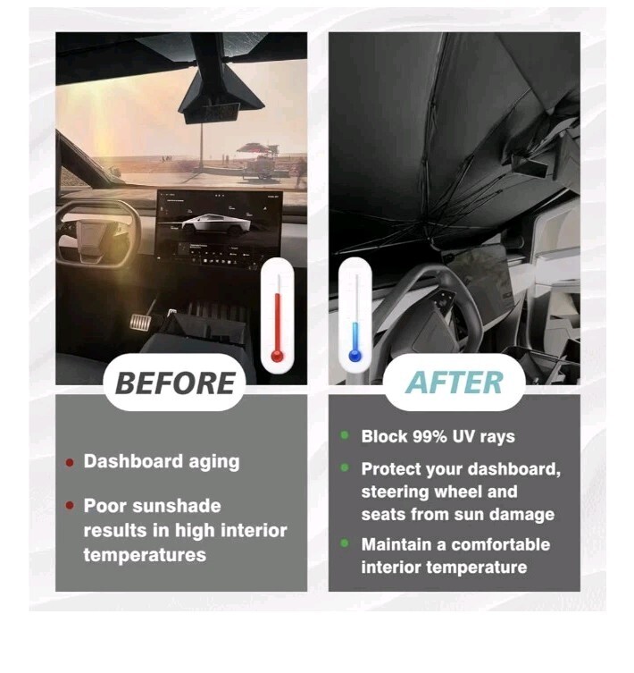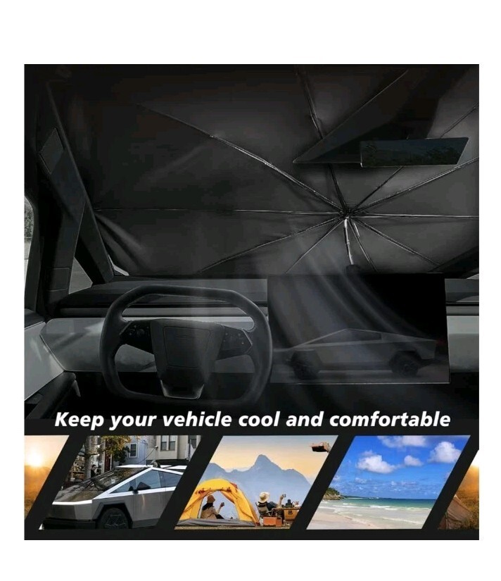 - Windshield Sun Shade Foldable Sunshade Compatible 2024 2025 Tesla Cyber Truck
