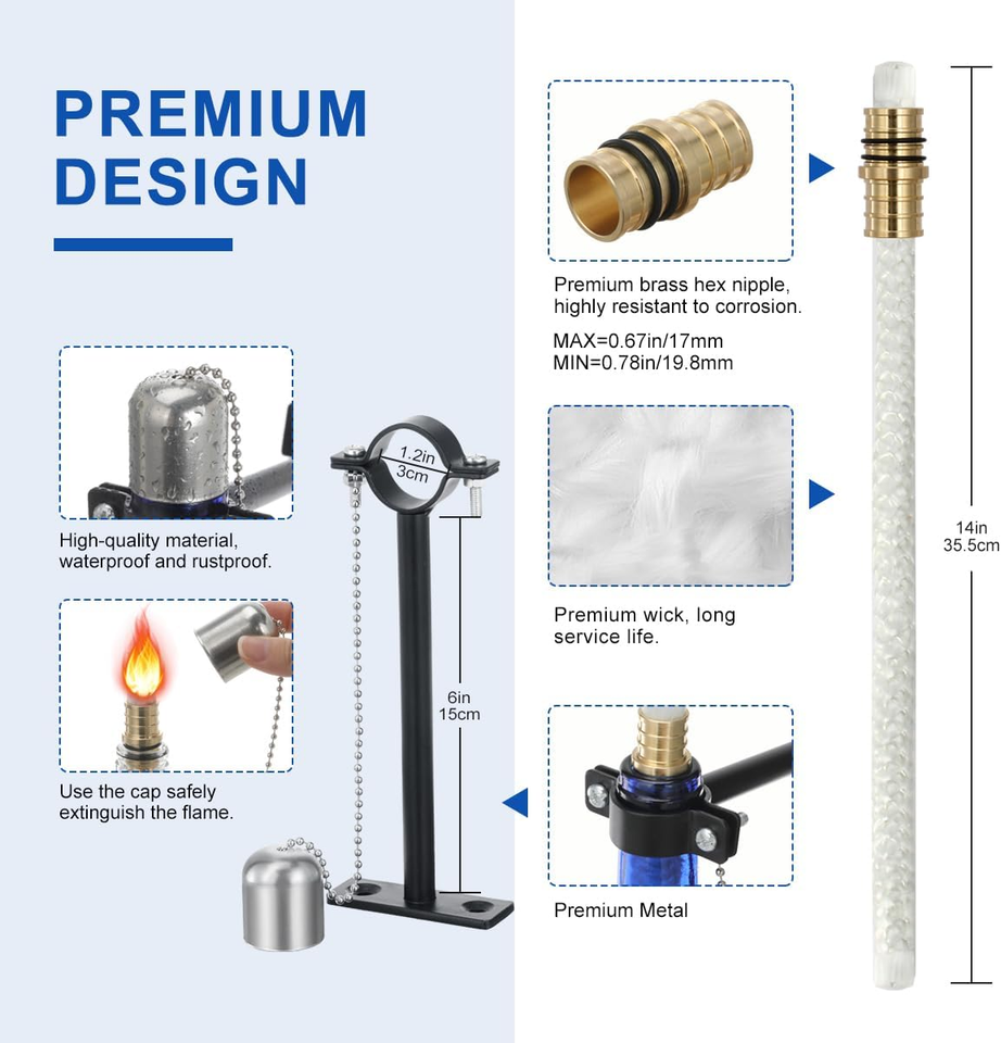 - Wine Bottle Torch Kit, Outdoor Patio Wall Mount Holder with Wick, Porch Whiskey