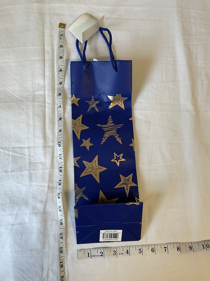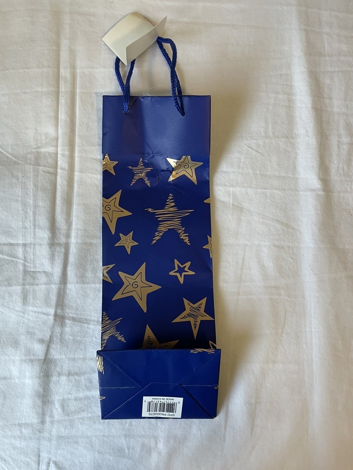 - Wine Or Champagne Gift Bag - Blue W/ Gold Stars - e715