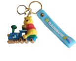Winnie the Pooh keychain, Disney Pooh bear charm, cartoon keyring, train keychain, rainbow strap keychain, bag charm accessory, Pooh collectible, Disney gift idea, Pooh bear train figure, novelty keychain