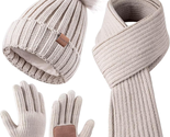 - Winter Beanie Hat Scarf Gloves Set for Women, Womens Beanie with Pom Pom Long Sc