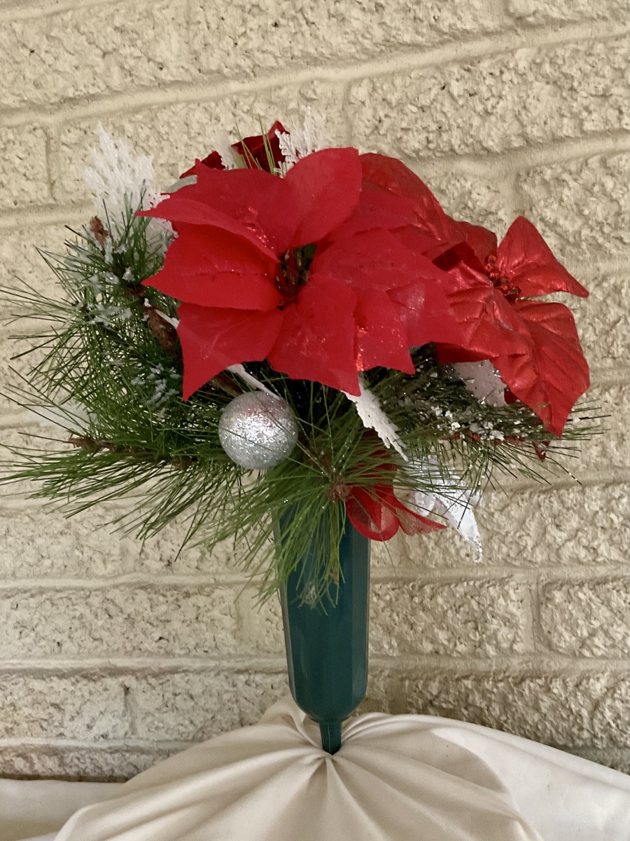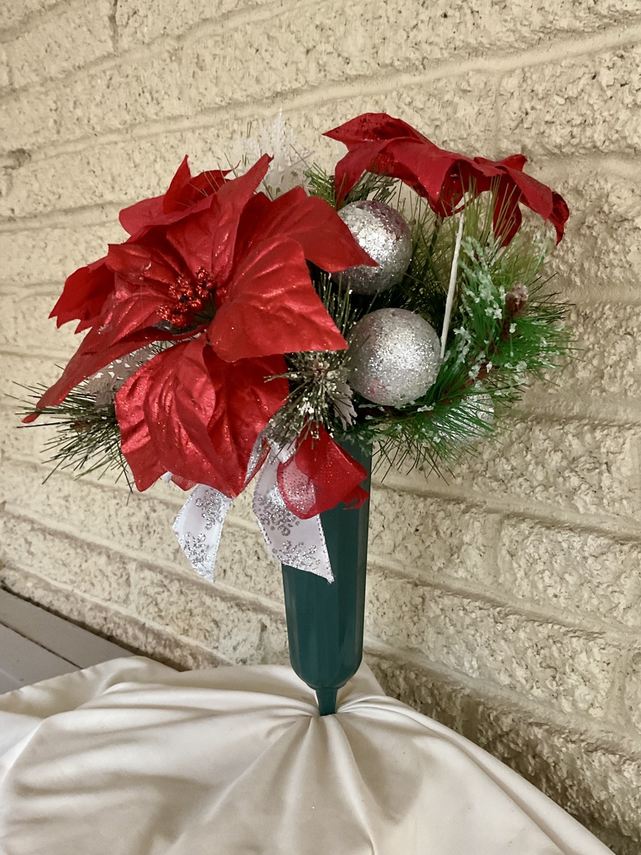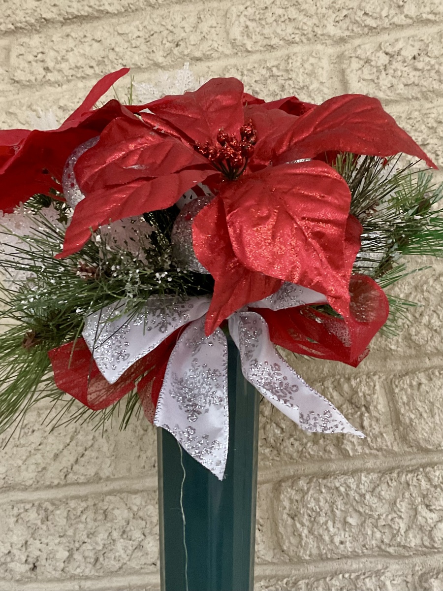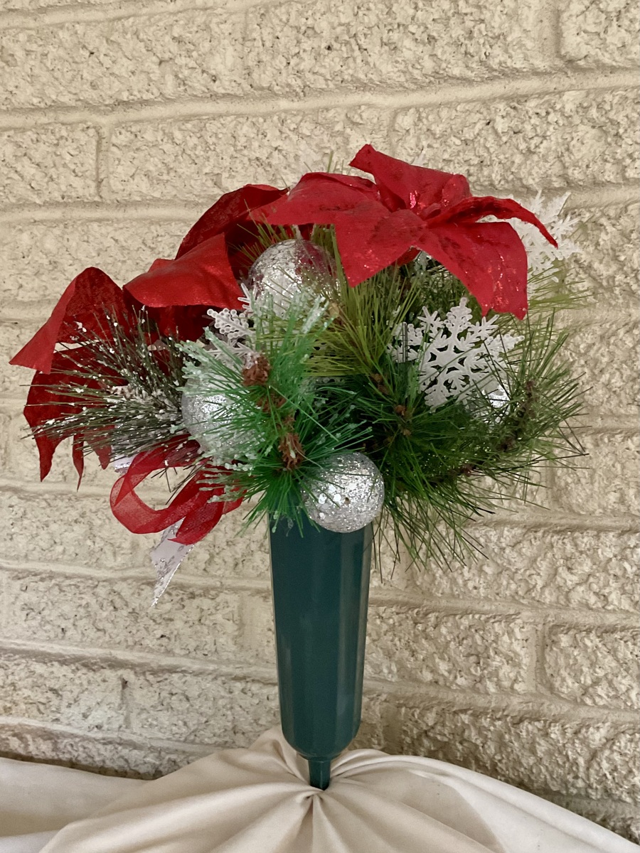 - Winter Cemetery Vase, poinsettias , Winter Grave Decoration