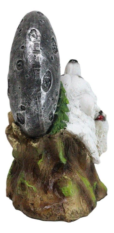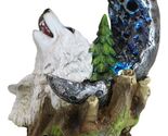 - Winter Pine Forest Howling Snow White Wolf Mother And Cub With LED Moon Figurine