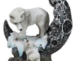 Winter Snow White Wolf Mother With Pup By Snowy Crater Crescent Moon Figurine