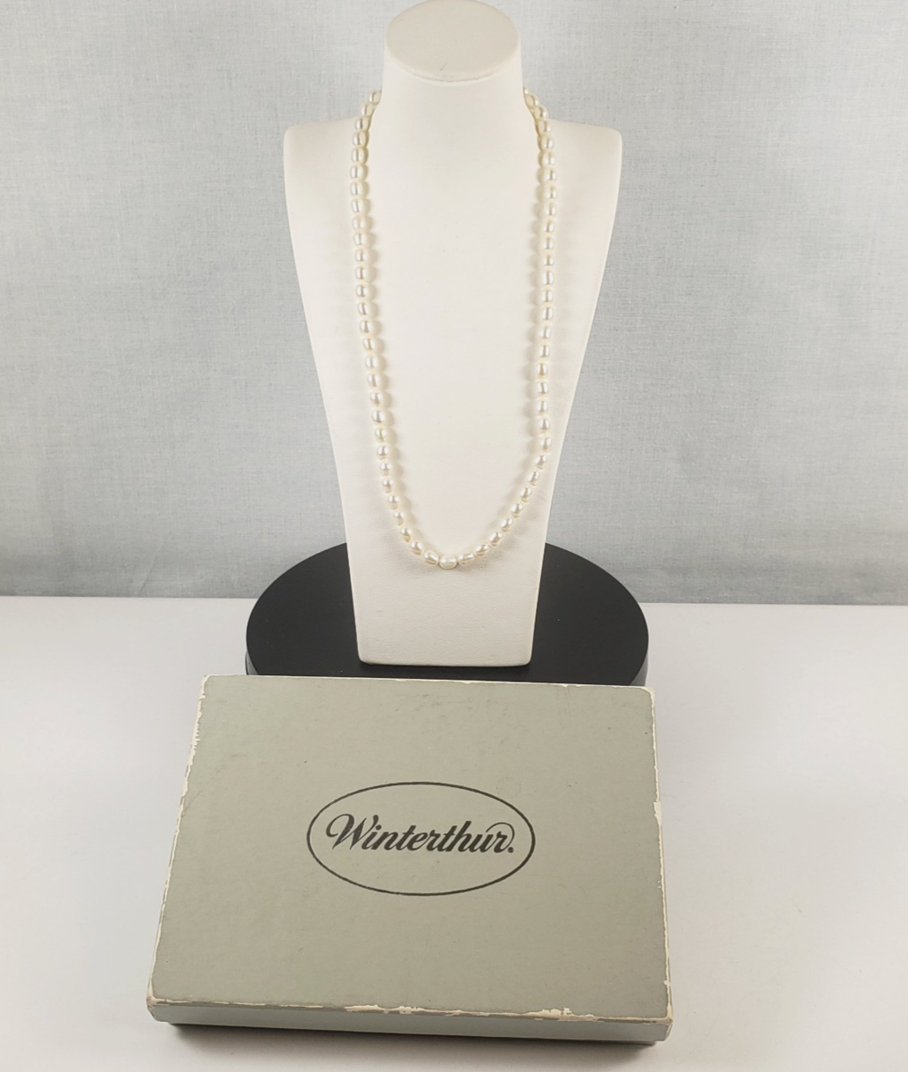 Vintage 1950's Winterthur 14kt Gold Clasp Freshwater Knotted Pearl 15" Necklace