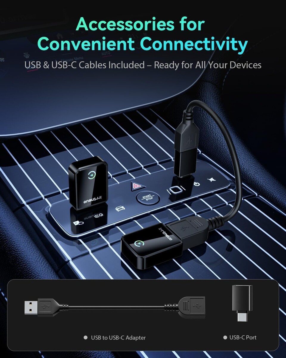 Effortless Setup with Auto-Reconnect: Simply plug the adapter into your car?s USB-A or USB-C port, pair it once, and enjoy automatic reconnection every time you start your car. No additional software or setup needed-just smooth, consistent performance day after day.