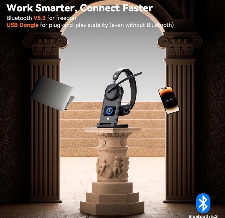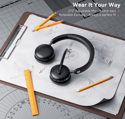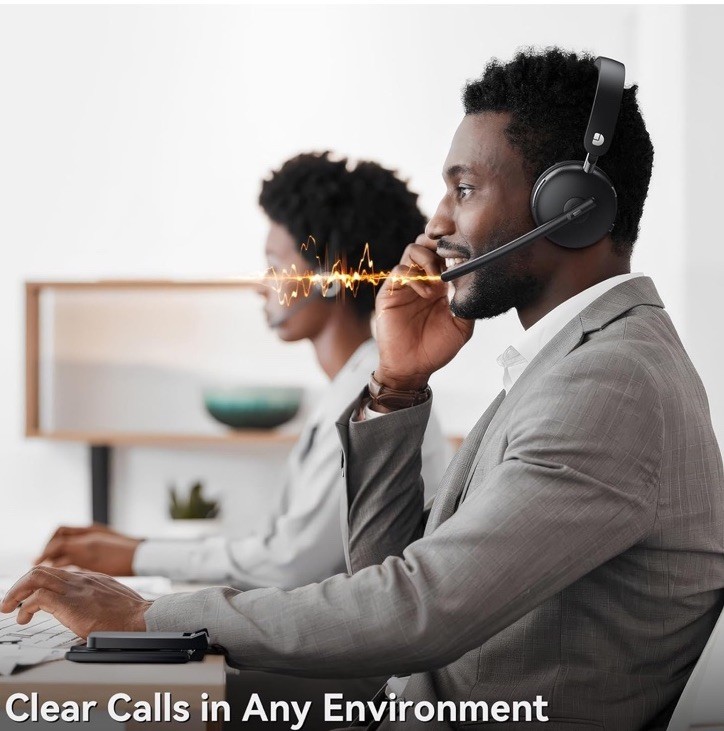 - Wireless Headset with Mic for Work-Bluetooth 5.3 Headset with Noise Black