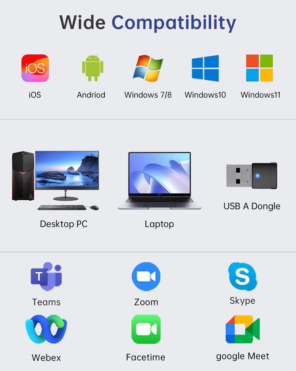 ?Bluetooth V5.3 Bluetooth USB Dongle? Built for both work and play, this headset with microphone for work gives you two ways to connect for all-day versatility. Pair with Bluetooth 5.3 for calls, music, or movies, or use the Bluetooth USB dongle for crystal-clear business meetings. The wireless headset carries you from office hours to downtime. Enjoy a stable connection up to 36ft/10m. PLEASE NOTE: This headset cannot connect to two devices at once