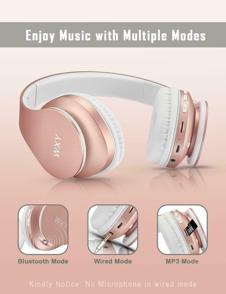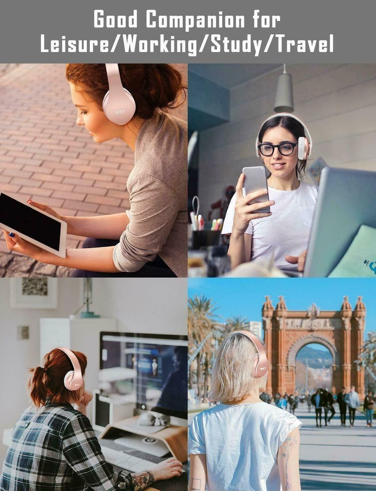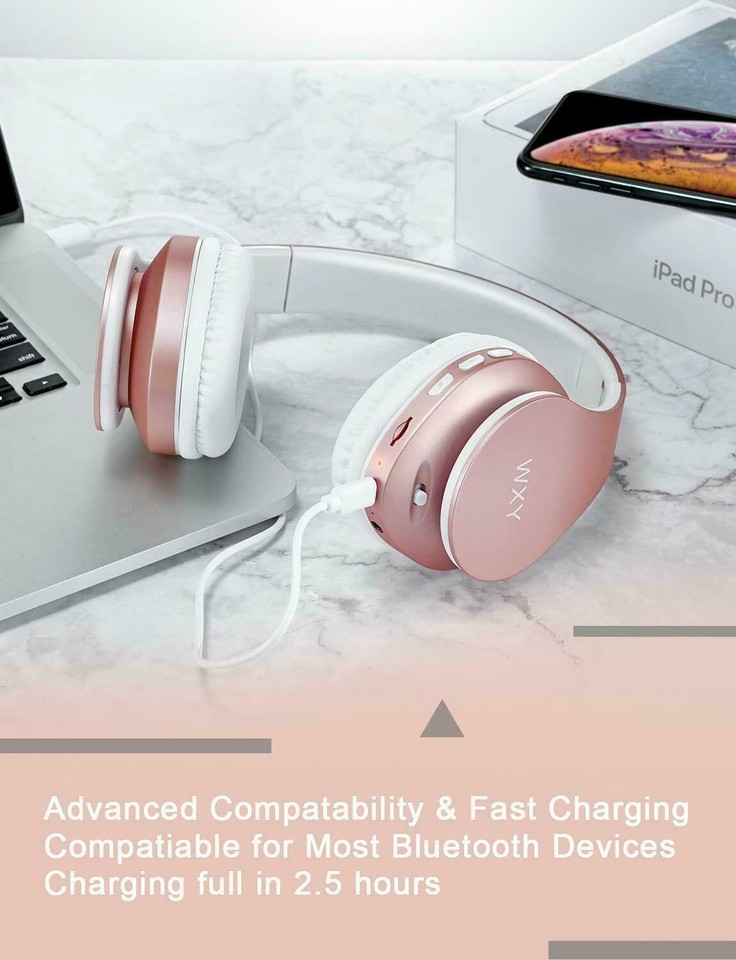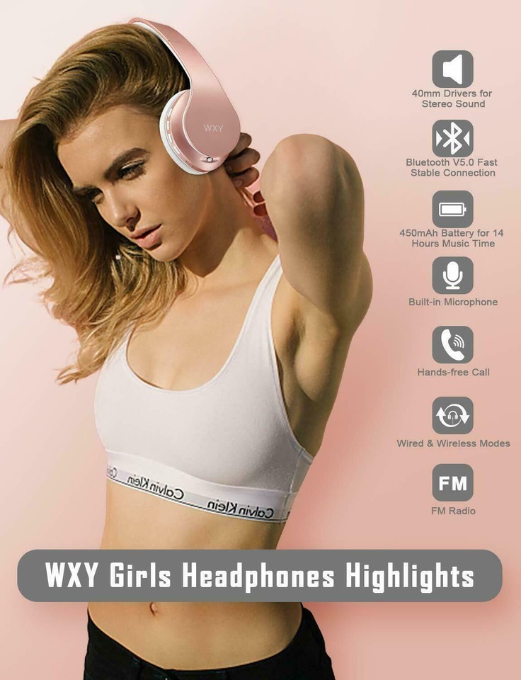 WXY Girls Women Headphones with soft pad and adjustable and foldable headband are very comfortable to wear and easy to carry( Come with a free rose gold sleek protective case)