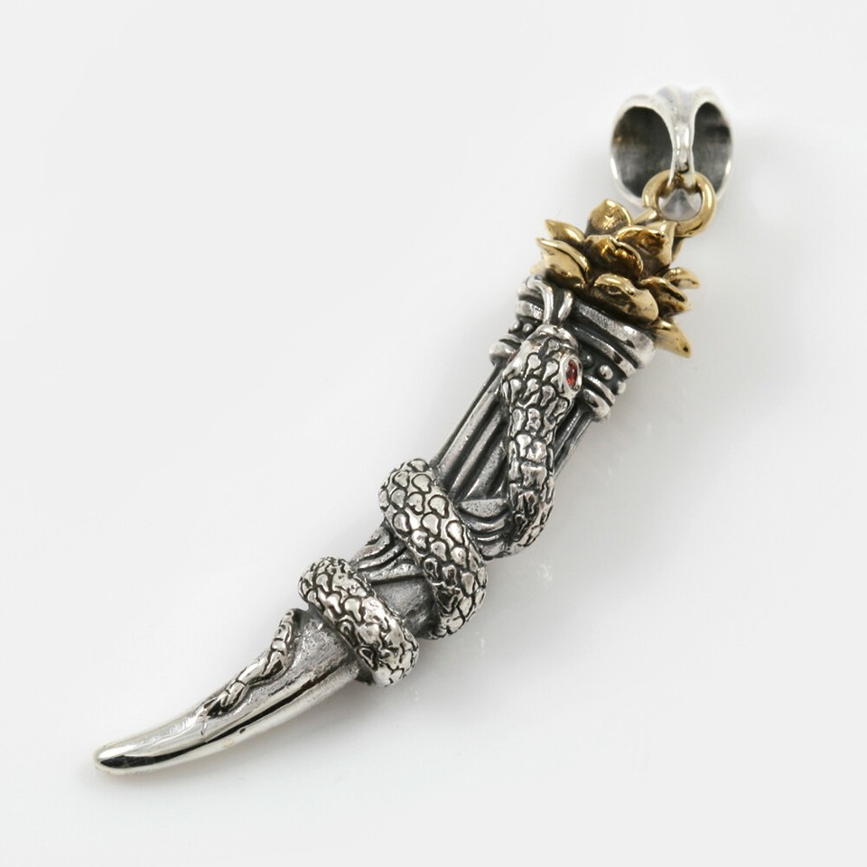 - Wisdom Snake Serpent Golden Lotus Flower, Horn Amulet Kundalini Energy