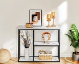 MODERN CONSOLE TABLE - The combination of faux marble tabletop and black metal frame shows a charming industrial retro style. The elegant entryway table can decorate your home beautiful and show the master's refined taste. 3-TIER ENTRYWAY TABLE - The narrow console table has a multiple intervals design for bringing function to store items, such as books, decorations, plants or photo frames without taking up space. Console Table Size: 39.4?x 11.8?x 31.5?. MULTIFUNCTIONAL CONSOLE TABLE - Simple and stylish, it complements your furniture, which is a excellent choice as a entrance table, sofa table, behind couch table or hallway table. You can also put it in the kitchen as a bar counter or even as a storage shelf, TV stand. STABLE SOFA TABLE - The sofa table is made of high-strength particle board and sturdy metal frame for good stability and load-bearing. The 3-layer wood shelves is more stable than the mesh shelves and easy to clean. EASY ASSEMBLY SOFA TABLE - The package comes with instructions and assembly tools. Each part is numbered, you can follow the instructions to complete the installation within 15-20 minutes. WHAT YOU GET - A sofa table, a clear instruction, necessary tools, prompt response and lifetime customer service.