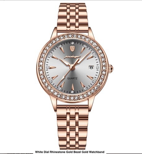 ? Classic Dial Choices: Available with Rose Gold, White or Pink dial featuring a rhinestone encrusted gold bezel and rhinestones with arrow markers for a sophisticated look.