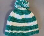 - Womans Hat Crochet Fleece Lined Beanie Boho Striped Green And White With Pom