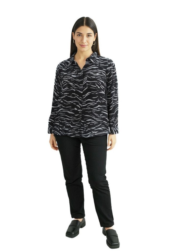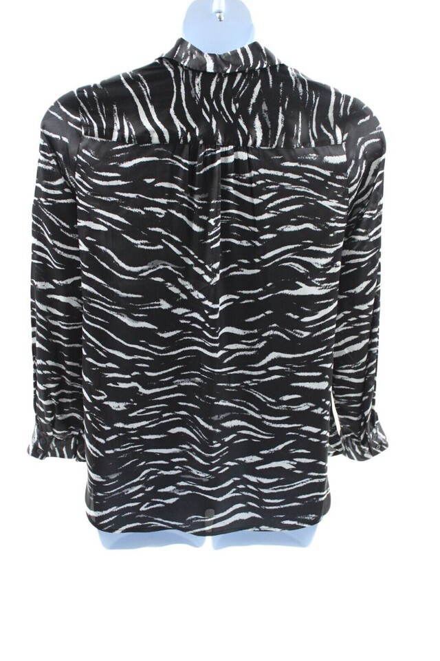 Inc International Concepts Women's Printed Button-Front Pocket Detail Top Size M Black/White