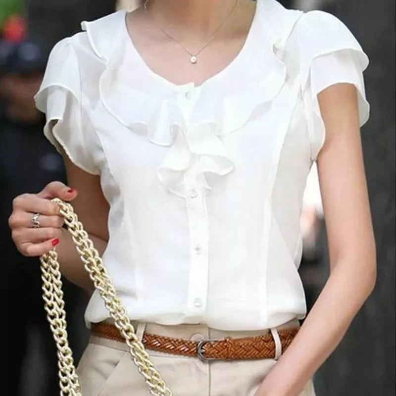 - Women Office Ladies Summer Chiffon Short Sleeve Casual Shirt Tops Blouse T-Shirt
