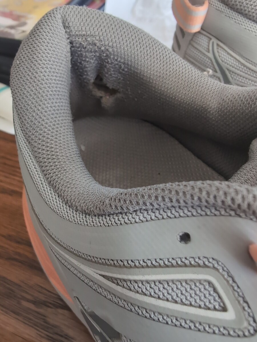 The shoes are in excellent condition with lots of life left in them-- please see last pic--there is a hole on the inside of the heel.